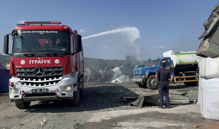 Kocaeli’nin Gebze ilçesinde geri dönüşüm deposunda çıkan yangın yarım saatte söndürüldü. Yangın sebebiyle gökyüzü adeta siyaha büründü.