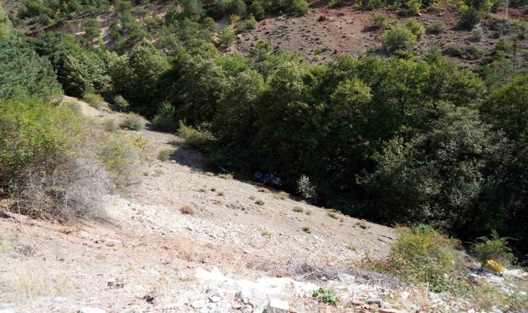 Gümüşhane’de geri manevra yapan pikap 40 metrelik uçuruma yuvarlandı, kazada 1 kişi yaralandı.