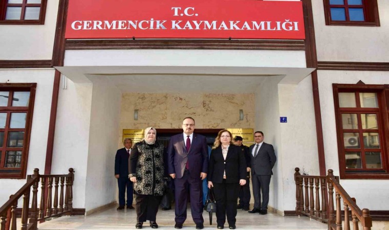 Aydın Valisi Yakup Canbolat, eşi Ayşegül Canbolat ile birlikte Germencik Kaymakamı Sultan Doğru’ya iade-i ziyaret gerçekleştirdi. İlçenin genel durumu, ekonomik faaliyetleri ve devam eden kamu projeleri hakkında Kaymakam Doğru’dan bilgi alan Vali Canbolat, Doğru’ya görevinde başarılar diledi. Kaymakam Sultan Doğru da Vali Canbolat ve eşine ziyaretinden dolayı teşekkür ederek Germencik’i daha da geliştirmek için var güçleriyle çalışacaklarını, ilçede hayata geçirilecek projeler ve çözüm bekleyen sorunlarla ilgili olarak Vali Canbolat ile sürekli iletişim halinde olacaklarını belirtti.