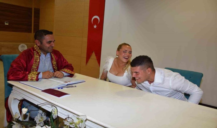 Germencik ilçesi Kızılcapınar Mahallesi’nde yaşayan 22 yaşındaki Ali Baş, 1 yıl önce tanıştığı İsveçli Cassandra İssabel Elise Bard (29) ile mutluluğa ‘Evet’ dedi. 2023 yılında Kuşadası’nda turizmci olarak çalıştığı esnada tanıştığı Cassandra ile dostluklarını devam ettiren Ali Baş, yaklaşık 1 yıl uzaktan görüşmeye başladı. Bu sürede dostlukları ilerleyen çift, hayatlarını birleştirme kararı aldı. Aileleri ile tanışan gençler, evlilik için adım attı. Germencik Belediyesi’nde düzenlenen nikah töreni ile dünya evine giren genç çifti, aileleri de yalnız bırakmadı. Nikah törenine katılan Germencik Belediye Başkanı Burak Zencirci de genç çifte mutluluklar dileyerek, evlilik cüzdanlarını takdim etti. Çifti tebrik eden Başkan Zencirci; “Kızılcapınar’dan kardeşimiz Ali Baş ve İsveç’ten Cassandra İssabel Elise Bard’ın nikah törenlerine katıldık, evlilik cüzdanını takdim ettik. Genç çiftimizi tebrik ediyor, ömür boyu mutluluklar diliyorum” dedi.