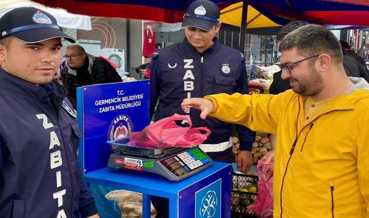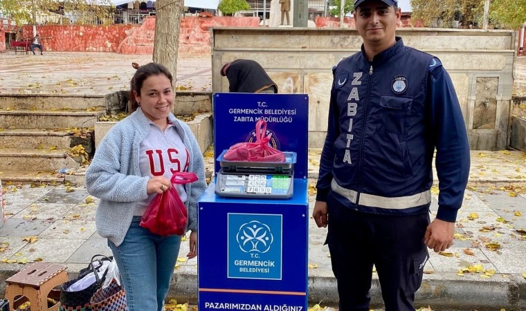 Aydın’ın Germencik ilçesinde, belediye ekipleri tarafından başlatılan semt pazarlarında tartı uygulaması sürüyor.
