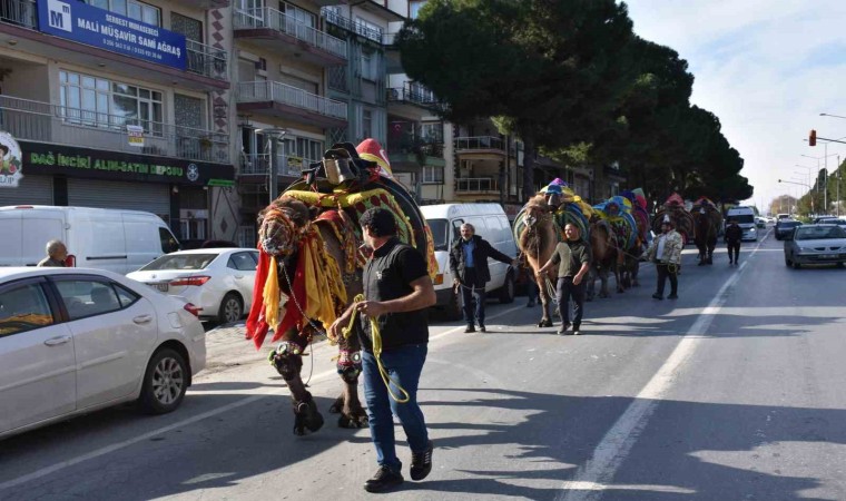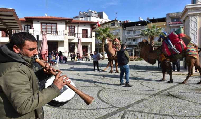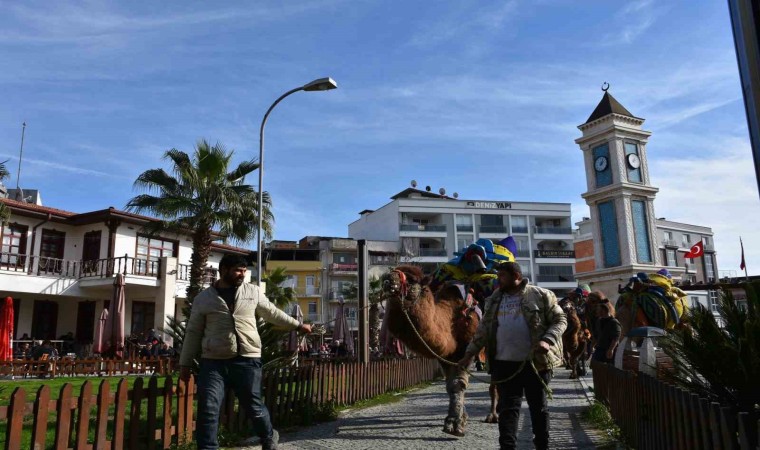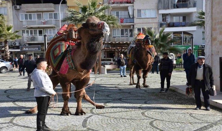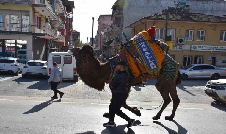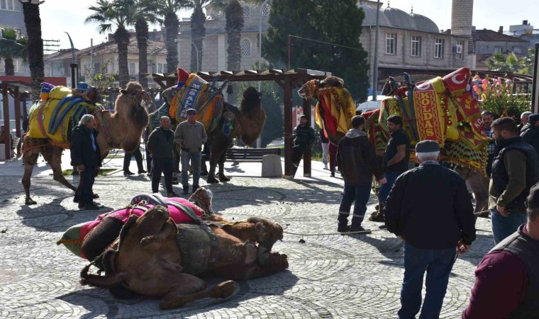 Germencik Belediyesi öncülüğünde gerçekleştirilecek olan deve güreşi öncesinde, sokağa inen pehlivan develer görücüye çıkarken, ilçe turu gerçekleştirildi.