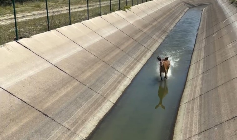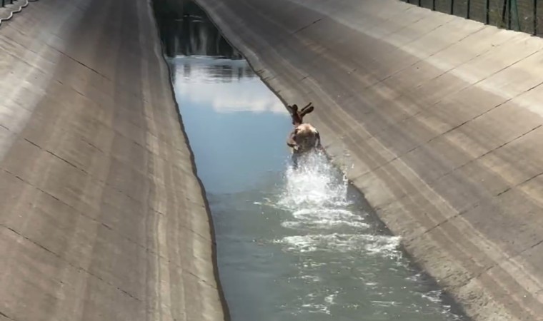 Bolu’da dengesini kaybederek su iletim kanalına düşen geyik, yetkililerin hızlı müdahalesiyle kurtarıldı.