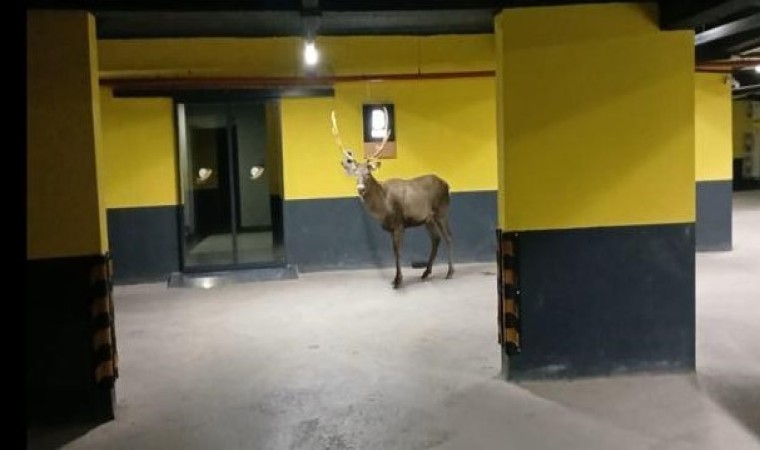 Kocaeli Büyükşehir Belediyesi, bakıma muhtaç halde bulunan geyikleri Ormanya’da tedavi edip, üremelerini de sağlayıp yeniden doğaya bırakıyor. Proje kapsamında 10 kızıl geyik, Eylül ayında doğaya salındı. Ormanya’da insanlara alışan geyiklerin bazıları ise yeniden şehre indi. Kartepe ve Başiskele ilçesinde görülen geyikler, sık sık hem vatandaş kamerasına hem de güvenlik kamerasına yakalanıyor. Geyikler, zaman zaman yerleşim yerlerine gelerek yiyecek arıyor. Başiskele ilçesinde bir sitenin önüne gelen geyik, güvenliği atlatarak siteye daldı. O anlar güvenlik kamerası tarafından anbean kaydedildi.