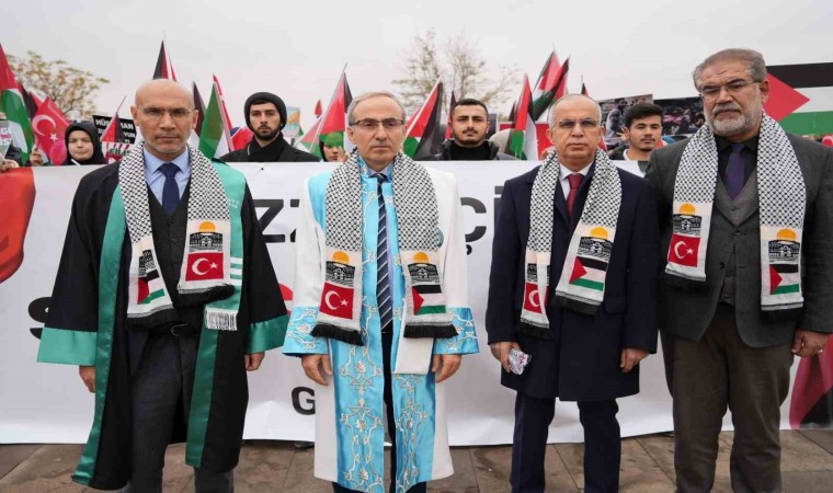 GİBTÜ Rektörü Prof. Dr. Şehmus Demir, yaptığı konuşmada İsrail’in Gazze‘ye yönelik saldırılarının insanlık dışı olduğunu söyleyerek, “İsrail’in Gazze’ye uyguladığı insanlık dışı zulüm, arşı titretiyor. Bu küçük toprak parçasında, dünyanın en gelişmiş silahlarıyla donatılmış bir güç karşısında, taşları, sapanları ve çıplak elleriyle direniş gösteren Gazze halkının cesareti, tüm dünyaya ilham kaynağı olmalıdır. Bebekleri, kadınları, gençleri ve yaşlıları acımasızca hedef alan bu zalim anlayış, insanlığın vicdanını derinden yaralıyor. Bizler, dünyanın her köşesinden her renkten, ırktan, dinden ve mezhepten insanlar olarak, Gaziantep’ten İsrail’in soykırımına karşı sesimizi yükseltiyoruz. Gazze’deki çocuk, kadın, yaşlı, herkes güvende olmadıkça İsrail güvende olmayacaktır, dünyanın hiçbir yeri güvende olmayacaktır" dedi.
