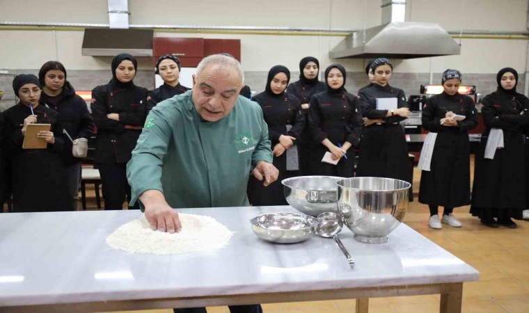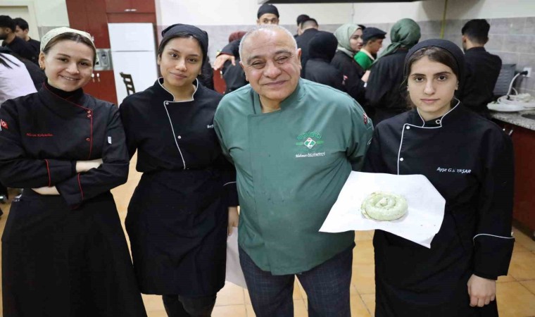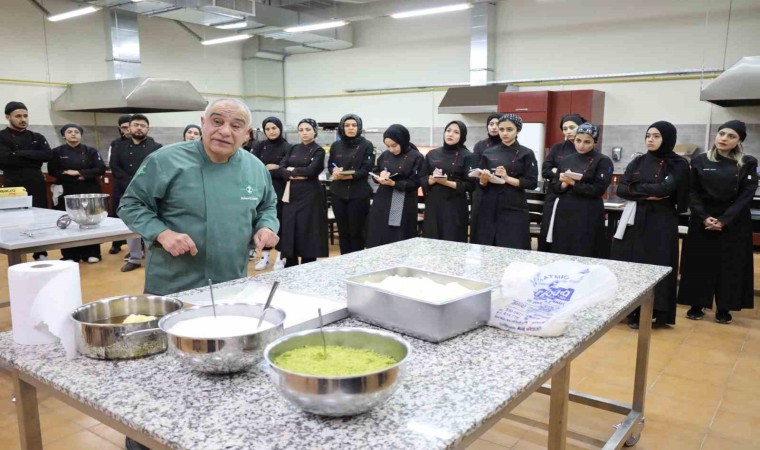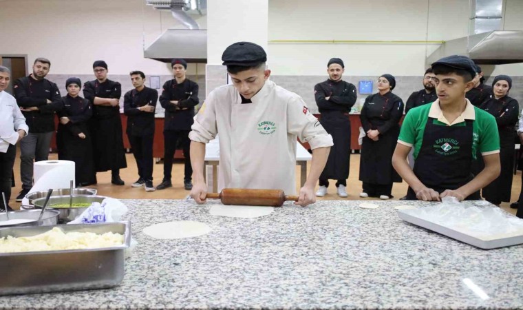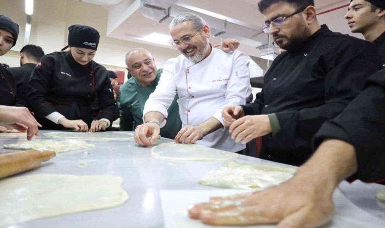Gastronomi şehri Gaziantep’in coğrafi işaret olarak tescillenen lezzeti katmerin yapımı Gaziantep İslam Bilim ve Teknoloji Üniversitesi Gastronomi Uygulama Mutfağı’nda Gastronomi öğrencilerine uygulamalı olarak anlatıldı.