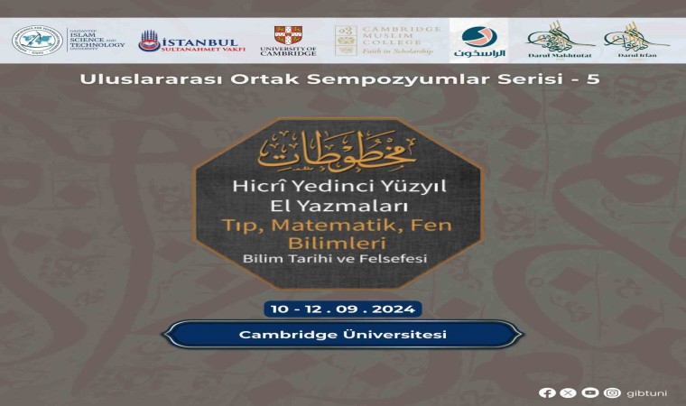 Gaziantep İslam Bilim ve Teknoloji Üniversitesi (GİBTÜ), İstanbul Sultanahmet Vakfı, Cambridge University, Cambridge Muslim College, Darul Makhtutat ve Darul Irfan, Al-Rasikhoon iş birliği ile İngiltere’nin Cambridge Üniversitesinde "Hicrî Yedinci Yüzyıl El Yazmaları: Tıp, Matematik, Fen Bilimleri Bilim Tarihi ve Felsefesi" başlıklı sempozyum düzenlenecek. 10-12 Eylül 2024 tarihleri arasında Cambridge Üniversitesi’nde gerçekleştirilecek, sempozyum özellikle Arap İslam medeniyetinin 4., 7. ve 10. asırlarında bilimin farklı alanlardaki gelişimini ve bu süreçte üniversitelerin oynadığı rolü tartışmaya odaklanacaktır. Alanında uzman akademisyenlerin katkılarıyla, bilimsel bilginin tarihi perspektifler ışığında derinlemesine inceleneceği bu platform, katılımcılara değerli bilgiler sunmayı amaçlıyor.