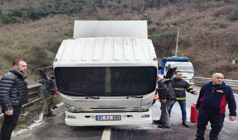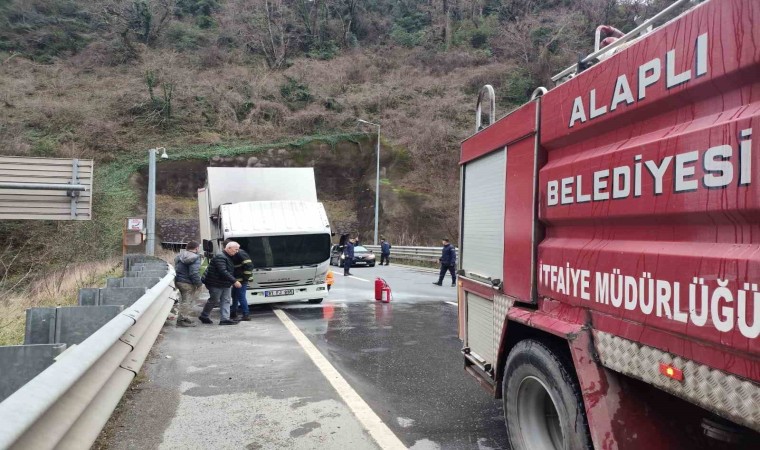 Edinilen bilgilere göre, olay Alaplı değirmenağzı mevkiinde meydana geldi. Alaplı yönüne gitmekte olan Hüseyin G. idaresindeki 81 FJ 895 plakalı gıda maddesi yüklü kamyonet, haraket halindeyken motor kısmından alev aldı. Motordan duman çıktığını gören sürücü, aracı emniyet şeridinde durdurup, 112 Acil Çağrı Merkezi’nden yardım istedi. İhbar üzerine bölgeye Alaplı itfaiye ekipleri sevk edildi. İttfaiye ekipleri müdahalesi ile kısa yangın büyümeden söndürülürken, kamyonette maddi hasar oluştu.