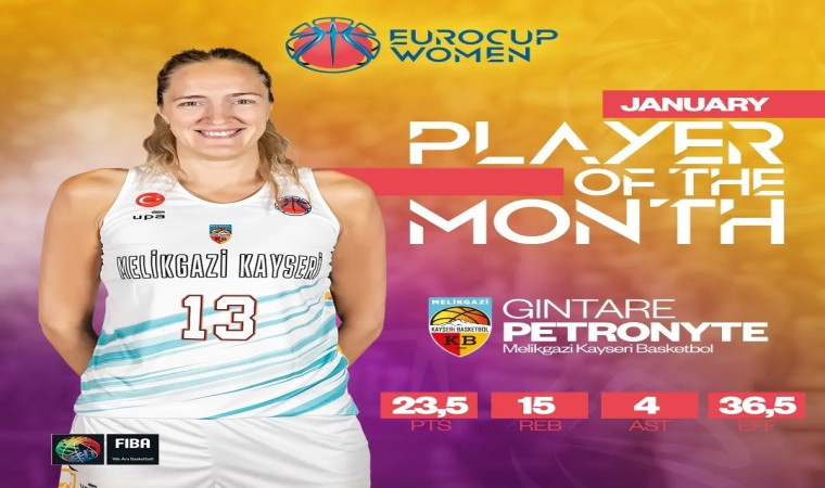 EuroCup Women mücadelesinde çeyrek finale yükselen Melikgazi Kayseri Basketbol’un başarılı oyuncusu Gintare Petronyte, Eurocup Ayın Kadın Oyuncusu seçildi. EuroCup’un resmi internet sitesinden duyurulan haberde özellikle Gintare Petronyte’nin Macar ekibi Pecs ile oynanan iki maçta ortaya koyduğu başarılı performansa atıf yapıldı. Tanıtım yazısı ile duyurulan ayın oyuncusu konusunda yapılan paylaşımda, “Gintare Petronyte, bir ay boyunca destansı bir mücadele sonunda Melikgazi Kayseri’yi EuroCup Kadınlar Çeyrek Finallerine göndermenin karşılığı alındı” ifadelerine yer verildi.