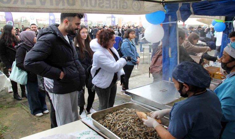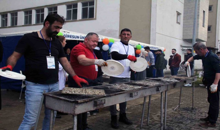 Giresun Üniversitesi’nin Güre Yerleşkesinde düzenlenen hamsi şöleninde binlerce öğrenci bir saat içerisinde 1 ton hamsi tüketti.