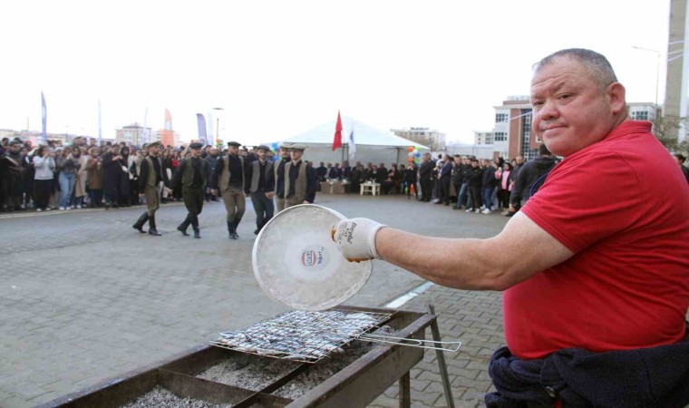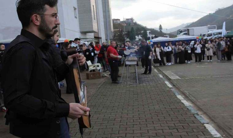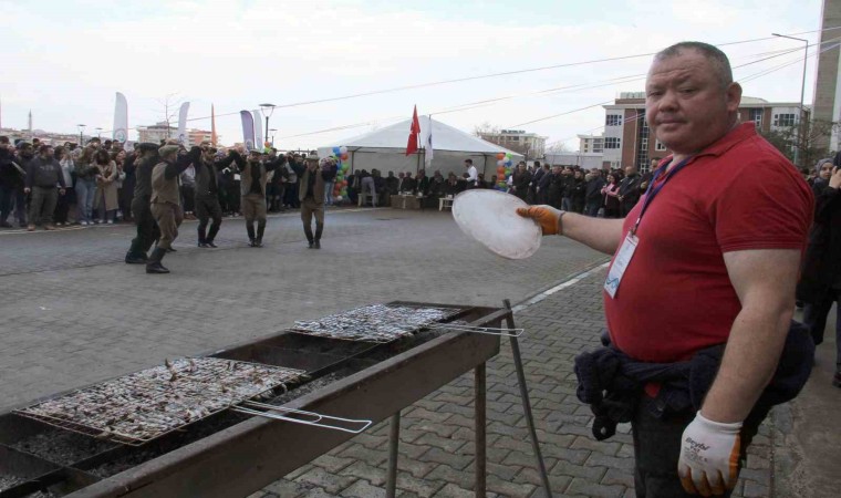 Yapılan konuşmaların ardından binlerce öğrenci 1 ton hamsiyi bir saat içerisinde tüketirken, kemençe eşliğinde horon oynayıp eğlendiler.