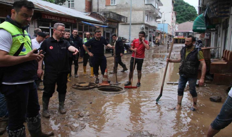 Beraberindeki Karayolları, AFAD ve DSİ Bölge Müdürleri ile Piraziz ilçesinde incelemelerde bulunan Vali Enver Ünlü, yapılan çalışmalarla ilgili bilgi verdi. Dün akşamdan beri teyakkuzda olduklarını, riskli bölgelerde gerekli önlemleri alarak vatandaşları sel ve heyelan riskine karşı uyardıklarını belirten Vali Ünlü, “Ordu ve Giresun il sınırını ayıran Abdal Deresi’nin taşması sonucu ilçenin Eren Mahallesi’nde ev ve iş yerlerinde su baskınları meydana geldi. İl genelinde su taşkınları Pirazizi’in yanı sıra Bulancak ilçemizde de etkili oldu. Çok şükür can kaybımız yok. Mahsur kalan vatandaşlarımızı kurtardık. Sabah saatlerinden itibaren 112 Çağrı Merkezimize 158 ihbar yapıldı. Bunların 33’u heyelanla ilgili, 24’ü su baskını ve 39 vatandaşımızın mahsur kaldığı ihbarı geldi. Çok şükür vatandaşlarımızın hepsini sağ salim kurtardık. İl genelinde 39 vatandaşımız binaların bodrum katında, zemin katında, iş yerlerinde veya yolda mahsur kalmıştı ve hepsi kurtarıldı. Yine 35 sel ihbarı, 4 kapalı yol ihbarı, 23 de farklı şikayetler olmak üzere toplam 158 ihbarın hepsi değerlendirilerek, gereken çalışmalar yapıldı. Şu andan itibaren vidanjörlerimizle, jandarmamızla, AFAD ve gönüllü ekiplerimizle, vatandaşlarımızla ilçe merkezinde temizleme çalışmaları yapılıyor. Hayat normale dönünceye kadar sahada olmaya devam edeceğiz” dedi.