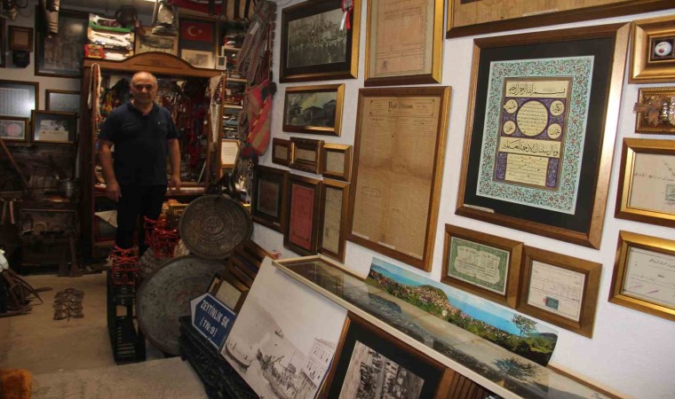Bir devlet kurumunda memur olarak çalışan Menteşeoğlu, 20 yılı aşkın süredir Giresun’a ait Osmanlıca belgeler, gazeteler, fotoğraflar ve etnografik eserleri toplayarak apartmanının bodrum katında sergiliyor.