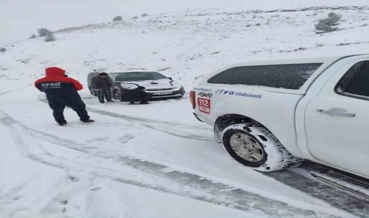 Giresun’un Alucra ilçesinde Kurtbeli yayla yolunda yoğun kar yağışı nedeniyle araçlarında mahsur kalan vatandaşlar AFAD ekipleri tarafından kurtarıldı.
