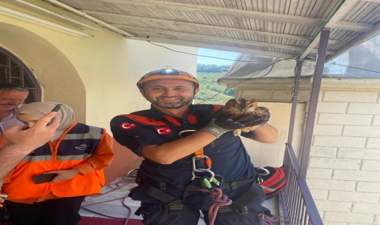 Giresun’un Eynesil ilçesinde cami minaresinde mahsur kalan ve uzun süredir vatandaşlar tarafından beslenen baykuş kurtarıldı.