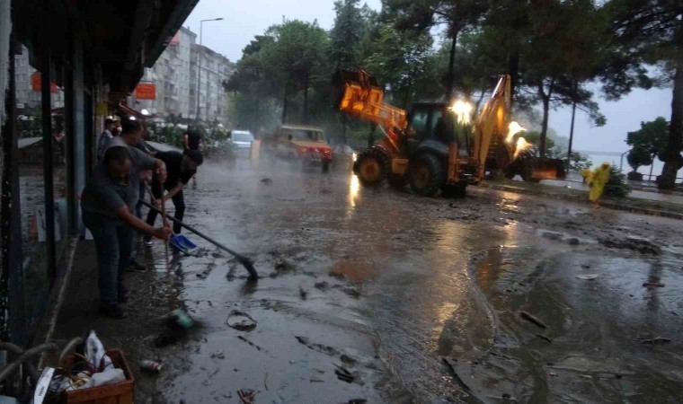 Su taşkını nedeniyle şehir içi yolu trafiğe kapatılırken, belediye ekipleri suyun tahliyesi ve molozların temizlenmesi için çalışma başlattı. Bölgedeki iş yeri sahipleri, genellikle kuru bir dere olan Kumyalı deresinin bu denli taşmasının ilk kez yaşandığını belirterek, iş yerlerine su dolduğunu ifade etti.