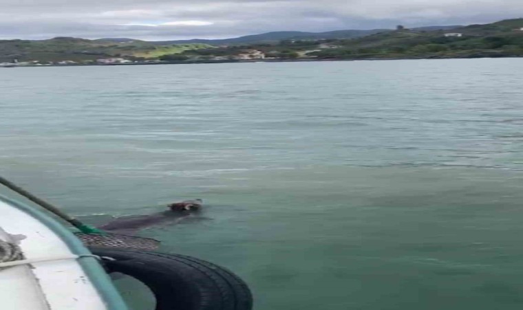 Giresun’un Keşap ilçesinde ava çıkan balıkçılar, denizin ortasında bitkin halde buldukları yavru ayıyı ağları ile yakalayarak kıyıya çıkarttı.