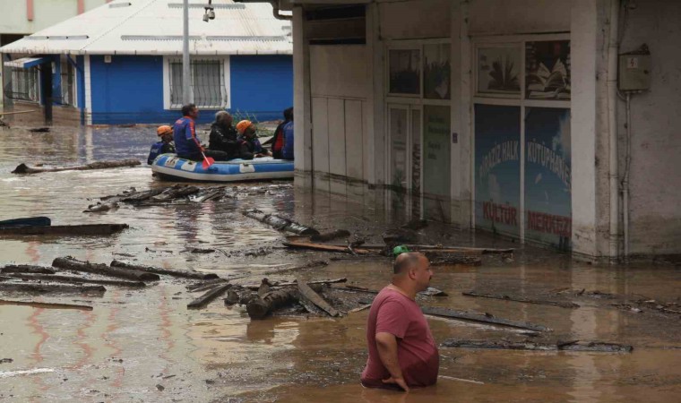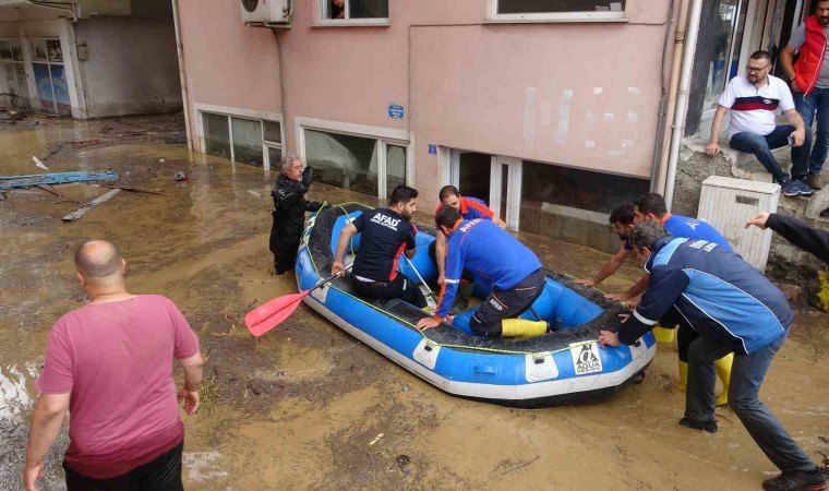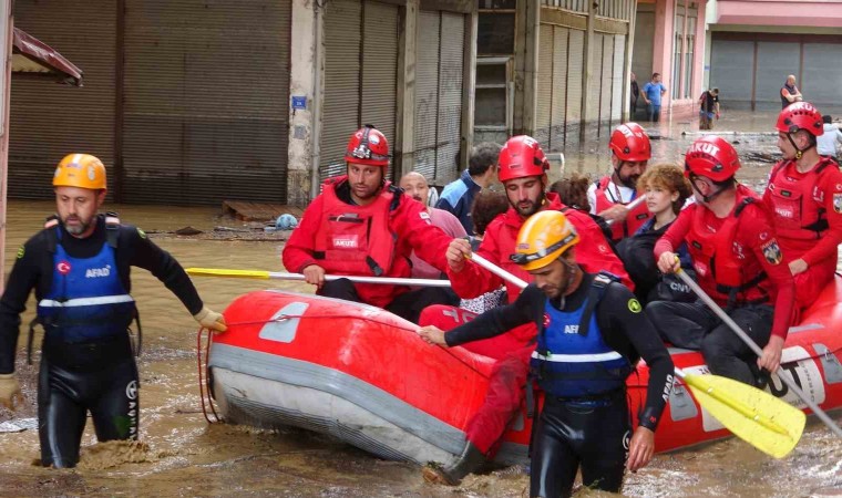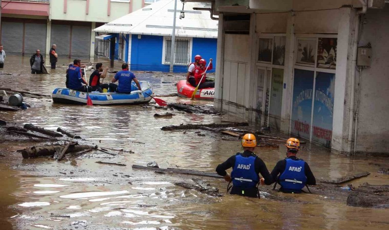 Giresun’un Piraziz ilçesinde etkili olan şiddetli yağış sebebiyle Ordu-Giresun arasındaki Abdal Deresi taştı. Derenin taşması sonucu bazı ev ve işyerlerini su basarken, ev ve iş yerlerinde mahsur kalan vatandaşlar AFAD ekipleri tarafından botlarla kurtarıldı.