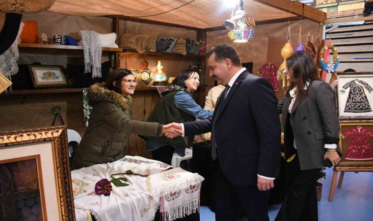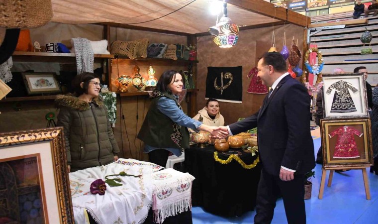Balıkesir Büyükşehir Belediyesi tarafından düzenlenen ‘El Emeği Ürünler Fuarı’nı eşi Mehtap Yılmaz ile birlikte ziyaret eden Başkan Yücel Yılmaz, girişimci kadınların stantlarını tek tek ziyaret ederek ürünlerini inceledi. El emeği ve özgün ürünlerinin satışı için kendilerine bu imkânı sunan Başkan Yılmaz’a teşekkür eden kadınlar, yılbaşı öncesinde çok güzel satış yaptıklarını dile getirdi.