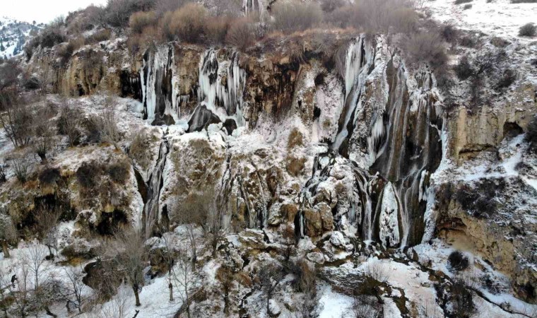 Erzincan’da doğal güzelliğiyle öne çıkan Girlevik Şelalesi, geceleri yaşanan soğuk havayla birlikte kısmen buz tuttu. Ortaya çıkan görüntü ise görenleri kendine hayran bıraktı.