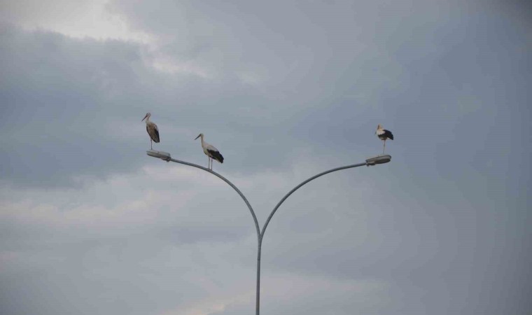 Kış mevsimini geçirmek için güneye göç etmeye başlayan leyleklerin bir kısmı, Konya’nın Ereğli ilçesinde mola verdi.