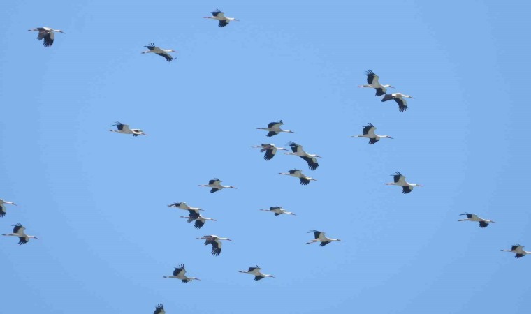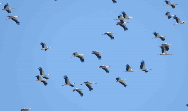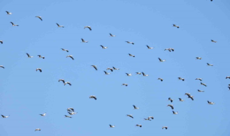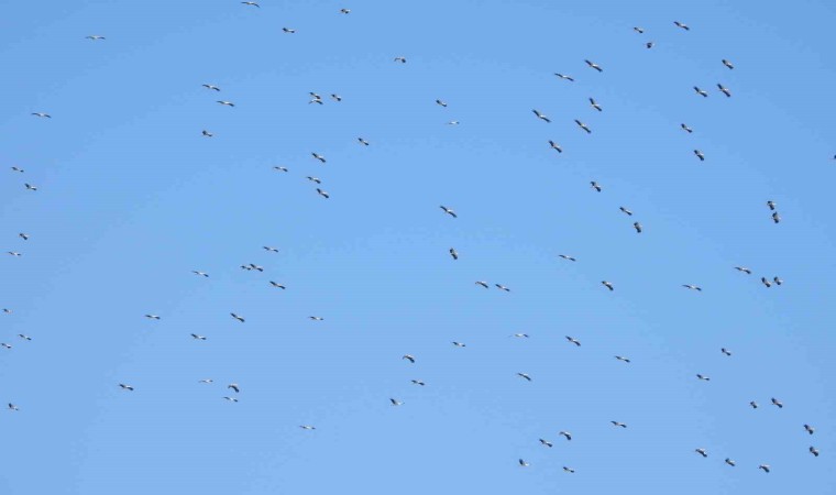 Kuş gözlemcisi Erol Yüksek, “Müthiş bir leylek göçü var şu an, binlercesi geliyor. Her sene bu zamanlarda buradan geçiyorlar. Daha önce burada dinleniyorlardı ama şu an durmadıla,r yollarına devam ettiler, çok güzel bir manzara” dedi.