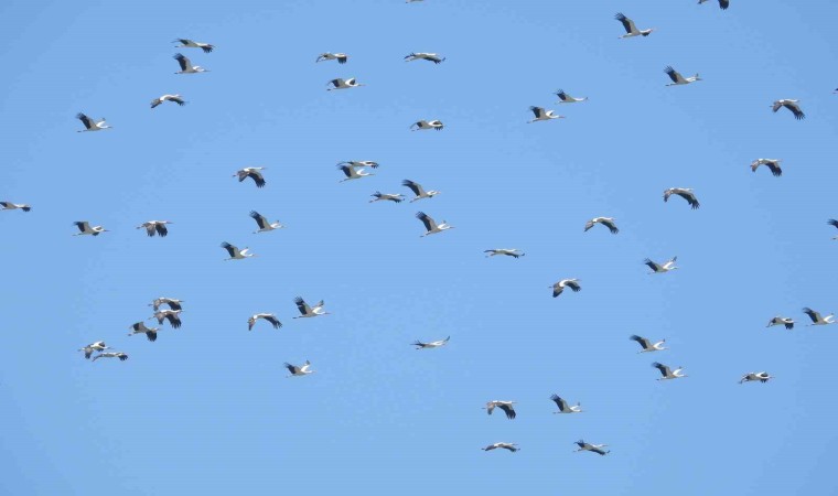 İlkbaharın gelişinin sembolü olan leyleklerin Hatay semalarındaki yolculuğu görsel şölen oluşturdu.