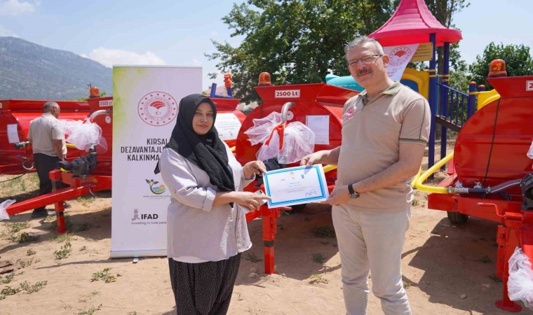 Hibe dağıtım programında daha sonra hak sahibi üreticilere taşınabilir hayvan içme suyu teslim belgeleri İl Tarım ve Orman Müdürü Mehmet Nuri Kökçüoğlu tarafından verildi. Üreticiler teslim aldıkları tankları traktörlerine takarak götürdü.