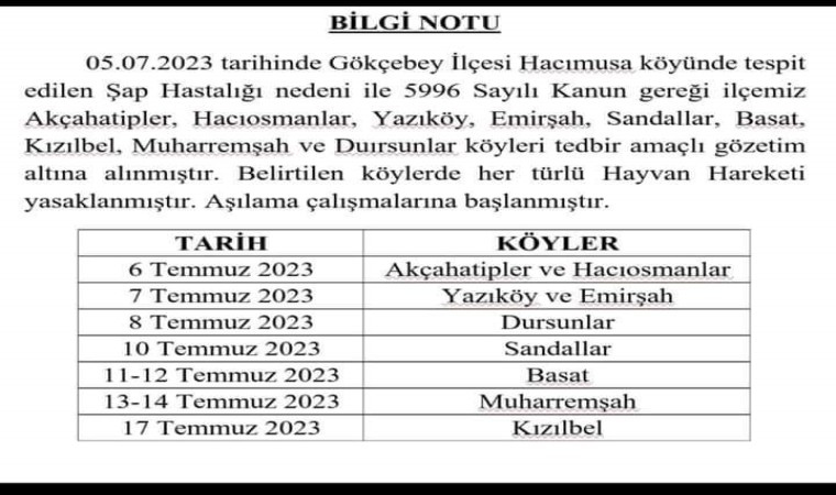 Zonguldak'ın Gökçebey ilçesinde, büyükbaş hayvanlarda şap hastalığının tespit edilmesi üzerine Çaycuma ilçesinde tedbir amaçlı aşılama çalışmaları başlatıldı. Hacımusa köyünde tespit edilen şap hastalığı nedeniyle 5996 sayılı kanun gereği Çaycuma ilçesinde bulunan Akçahatipler, Hacıosmanlar, Yazıköy, Emirşah, Sandallar, Basat, Kızılbel, Muharremşah ve Dursunlar köyleri olmak üzere toplam 9 köy gözetim altına alındı. Bu köylerde şu ana kadar şap hastalığına rastlanmamış olup, hayvan hareketleri geçici bir süreliğine yasaklanmıştır.