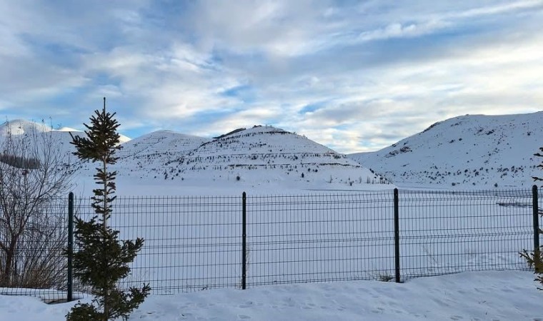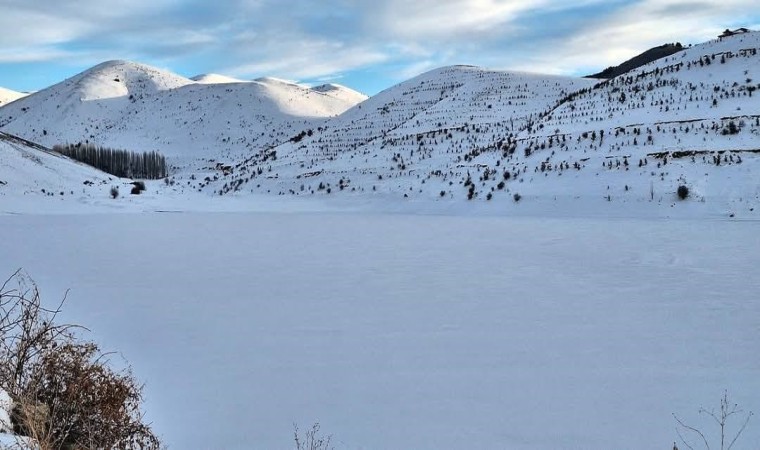 Soğuk havanın etkili olduğu Bayburt’ta Gökçedere Göletinin yüzeyi buz tuttu.