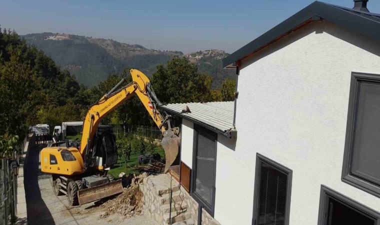 Osmangazi Belediyesi, Uludağ eteklerinde yer alan Gökçeören Mahallesi’nde imara aykırı şekilde inşa edildiği belirlenen villaların yıkımını sürdürüyor. Ekipler, tarım arazisi üzerine imara aykırı şekilde inşa edildiği belirlenen bir villanın daha yıkımı gerçekleştirildi.