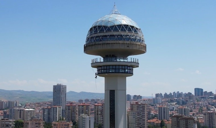 Yerden onlarca metre yükseklikte dağcılık tekniği kullanarak mesai yapan iple erişim teknisyenleri, Ankara’nın simge yapısı Atakule’nin bakım, onarım ve cam temizliğini halatlar sayesinde gerçekleştiriyor.