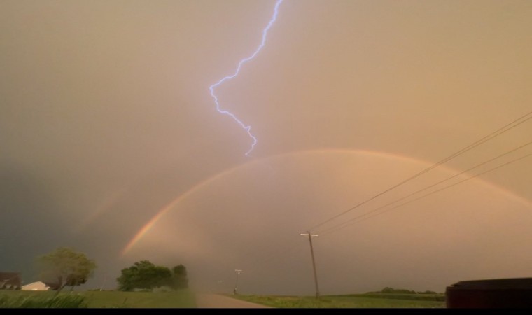 Iowa eyaletinde yer alan Manchester kentinde gökkuşağına yıldırım çarptığı anlar anbean kayıt altına alındı. Nadir rastlanan doğa olayı 29 Temmuz’da meydana gelirken, sosyal medyada büyük ilgi gördü. Iowa eyaletinde geçtiğimiz ayın sonundan bu yana fırtına ve hortumlar yaşanıyor.
