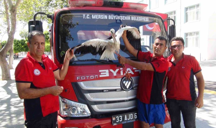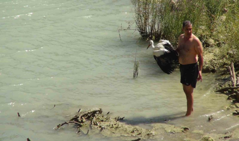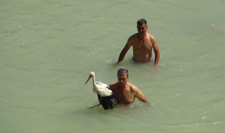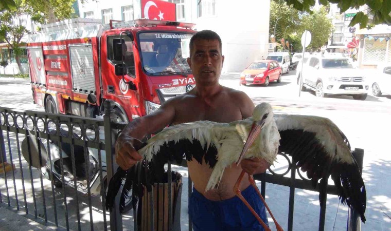 Mersin’de Göksu Nehri’nde bulunan adada üç gündür mahsur kalan yaralı leylek, yüzerek adaya giden itfaiye ekipleri tarafından kurtarıldı.