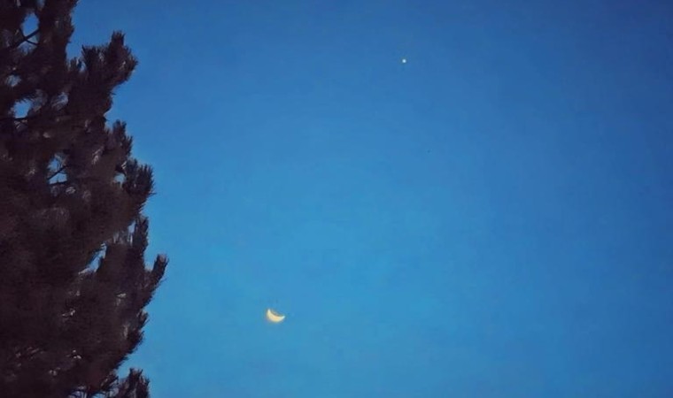 Çankırı’nın Çerkeş ilçesinde ay ve yıldızın yan yana gelmesiyle birlikte Türk bayrağını andıran görüntü büyük ilgi gördü. Vatandaşlar oluşan görüntüyü cep telefonları ile kaydetti.