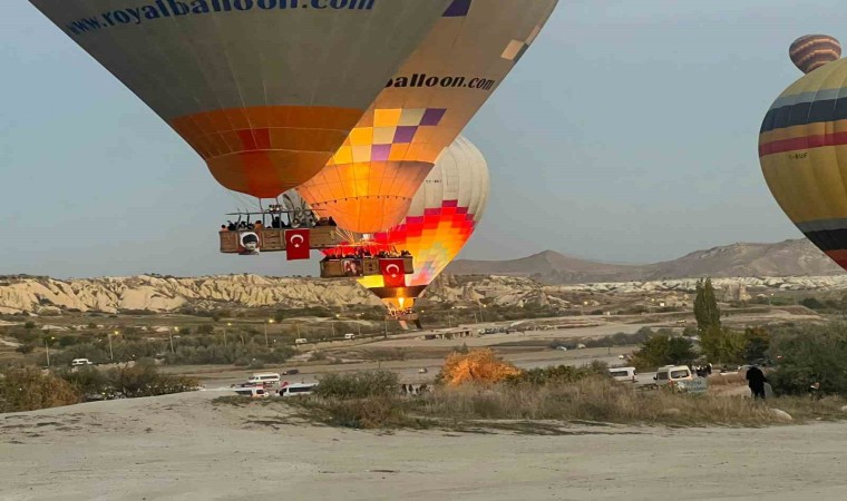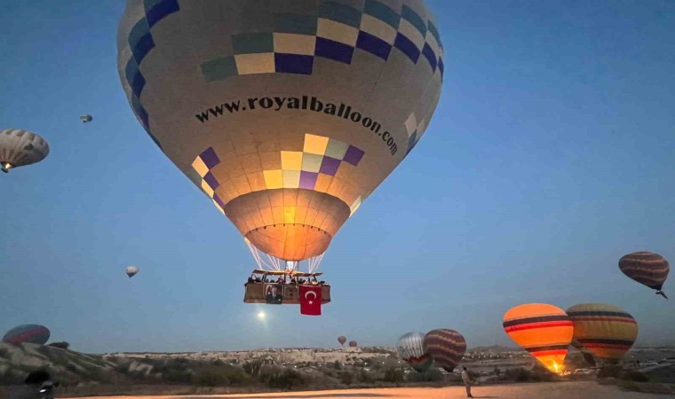 UNESCO Dünya Doğal ve Kültür mirası listesinde yer alan tarihi, kültürel ve doğal zenginlikleriyle tanınan turizm merkezi Kapadokya’da, yerli ve yabancı turistlere manzarayı gökyüzünden izlemelerine imkânı sunan sıcak hava balonlarının sepetlerine uçuş öncesi Türk bayrakları asıldı. Peş peşe havalanan 152 sıcak hava balonları, Göreme beldesi ve çevresindeki kalkış alanlarından gökyüzüne yükseldi.