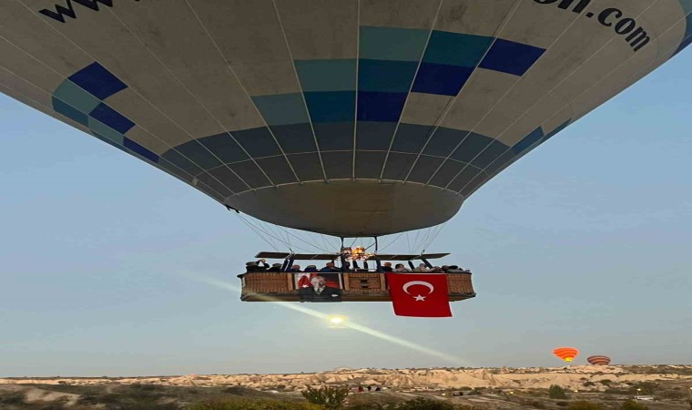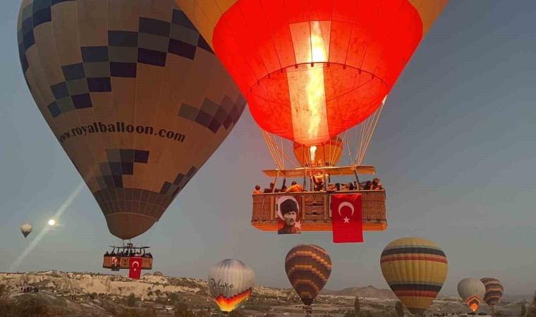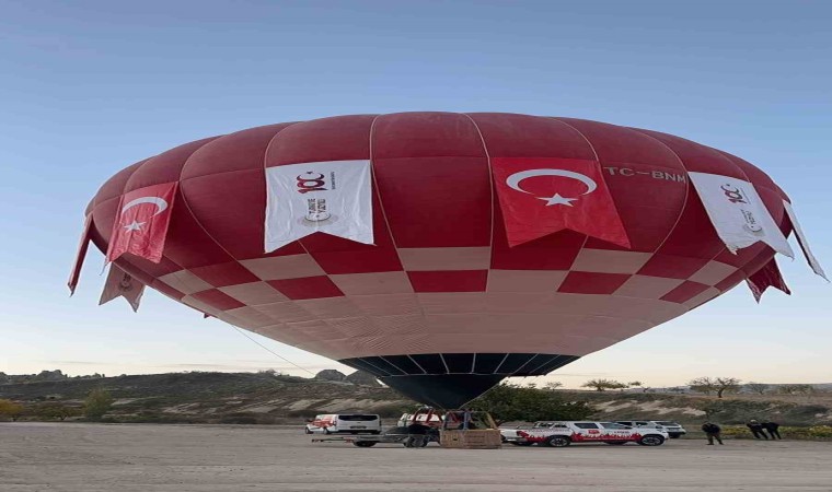 TÜRSAB Kapadokya Bölge Temsil Kurulu tarafından Cumhuriyetin 100. Yılı nedeniyle özel olarak hazırlanan Türk Bayrakları ve Atatürk posterleri sıcak hava balonlarına asıldı.