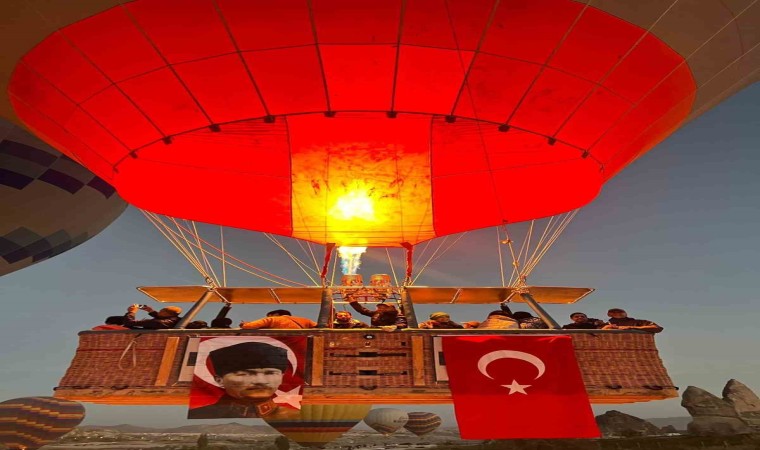 29 Ekim Cumhuriyet Bayramının 100. yılı dolayısıyla Kapadokya’da sıcak hava balonları gökyüzüne sepetlerine astıkları Türk bayrakları ve Atatürk posterleri ile havalandı. Havalanan sıcak hava balonları hem balona binenler hem de izleyenler için gökyüzünde görsel şölen oluştu.