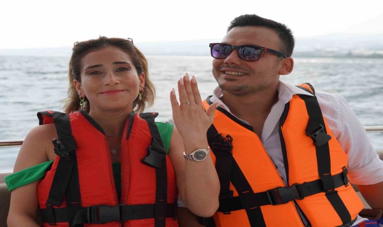 Mersin’in Erdemli Belediyesi, Erdemli Talat Göktepe Çamlığı kıyısında Su Sporları Merkezi’ni hayata geçirdi. Mavi ile yeşilin buluştuğu bir noktada kurulan proje ise yoğun talep görüyor. Taleplerin içerisinde en dikkat çekici olan ise çiftlerin evlilik teklifleri oldu. Paraşütle uçma heyecanına evlilik teklifi heyecanı da eklenince ortaya güzel görüntüler çıktı. Tekneden paraşütle uçan Musa Uysal, kız arkadaşı Seher Yüksel’e havada evlilik teklifi ederek evet cevabı aldı.