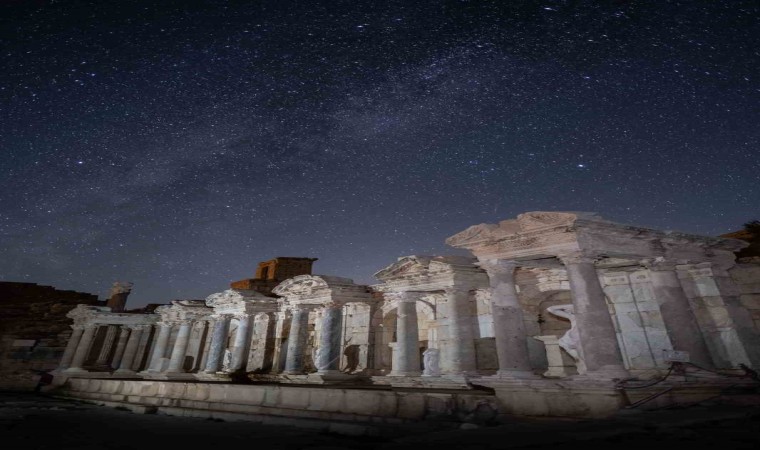 Yılın en etkileyici gök olaylarından birisi olan ’Perseid Meteor Yağmuru’ Psidia bölgesinin antik kentleri olan Sagalassos ve Kibyra’da fotoğraf sanatçılarına görsel şölen hazırladı. Sagalassos’ta kazı çalışmalarını sürdüren Doç. Dr. Peter Talloen’de ekibi ile birlikte bu eşsiz gökyüzü şölenini Antoninler Çeşmesi’nin önünde izleyerek “Antik kentte böyle olayları izlerken şehrin tekrar canlandığını hissediyoruz.” dedi.