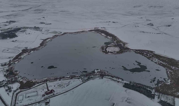Sivas’ta geçtiğimiz günlerde etkili olan yoğun kar yağışı yerini dondurucu soğuğa bıraktı. Termometrelerin sabah saatlerinde eksi 10 dereceyi gösterdiği kentte, Hafik ilçesinde bulunan Hafik Gölü’nün yüzeyi kısmen buz tuttu. Cumhurbaşkanlığı tarafından ‘Kesin korunacak hassas alan’ olarak belirlenen Hafik Gölü’nde buz kalınlığı yer yer 3 santimetreyi buldu. Kış şartları nedeniyle doğada yiyecek bulmakta zorlanan bir tilki ise buz tutan gölün yüzeyinde görüntülendi. Öte yandan gölün buz tutmayan kısımlarında toplanan yüzlerce Sakarmeke kuşları görsel şölen oluşturdu. Buz tutan göl havadan dron ile görüntülendi.