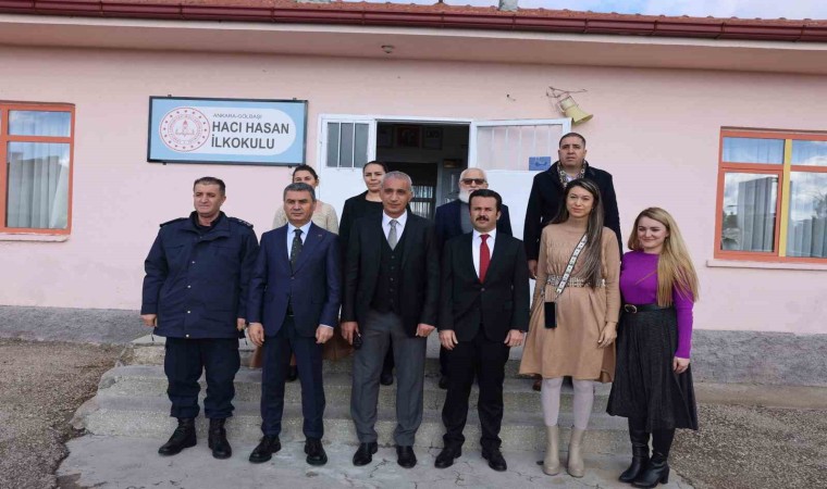 Gölbaşı Belediye Başkanı Ramazan Şimşek, Gölbaşı Kaymakamı Erol Rüstemoğlu, Kaymakam Refiki Ejder Şahin, Gölbaşı İlçe Jandarma Komutanı Mikail Arıkan, Gölbaşı İlçe Milli Eğitim Müdürü Serap Yılmaz ve Hacıhasan Muhtarı Mükerrem Çelik, Hacıhasan İlkokulu’nu ziyaret etti.