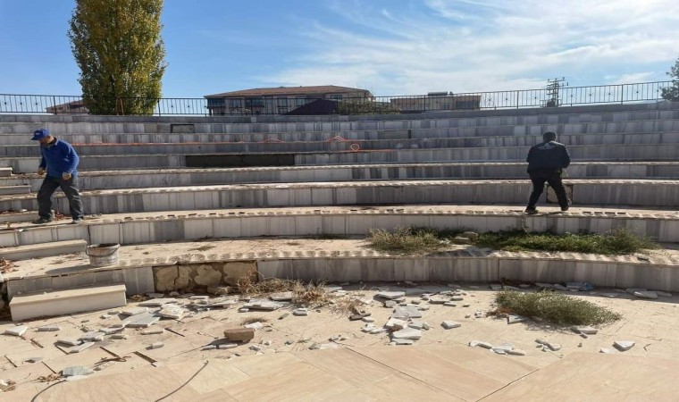 Adıyaman’ın Gölbaşı Belediyesi ekipleri ilçe merkezindeki önemli açık hava etkinlik alanlarından biri olan amfi tiyatroda hummalı bir çalışma yürütüyor.