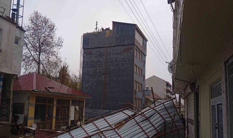 Adıyaman’ın Gölbaşı ilçesinde etkili olan yağmur ve rüzgar nedeniyle bir iş yerinin çatısı uçtu.