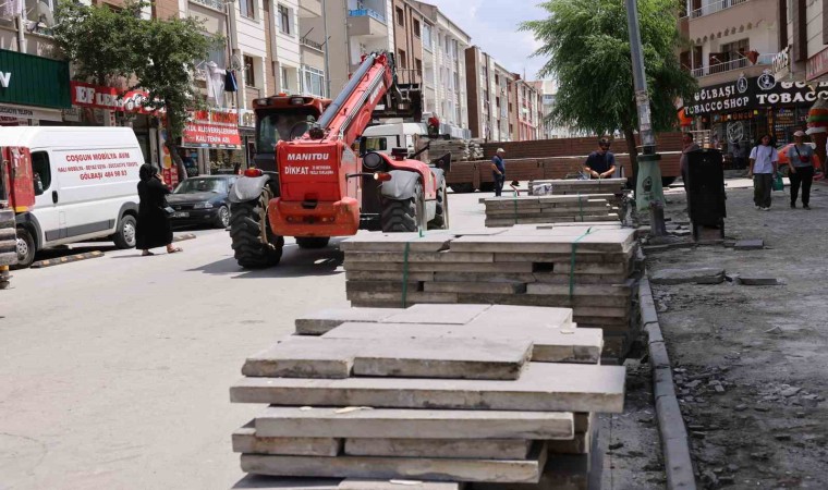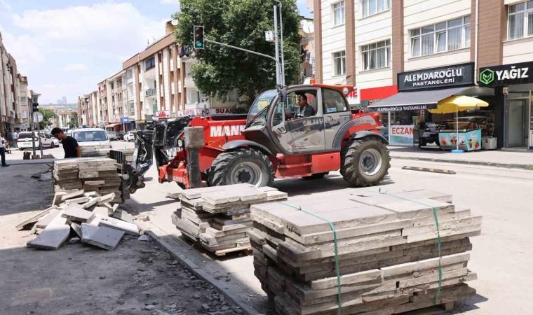 Ankara Gölbaşı Belediyesi Fen İşleri Müdürlüğü ekiplerinin Cemal Gürsel Caddesi’nde yaptığı çalışmalarda eski kaldırımlardan dolayı ortaya çıkan taşlar, konkasör alanında geri dönüştürülüyor.