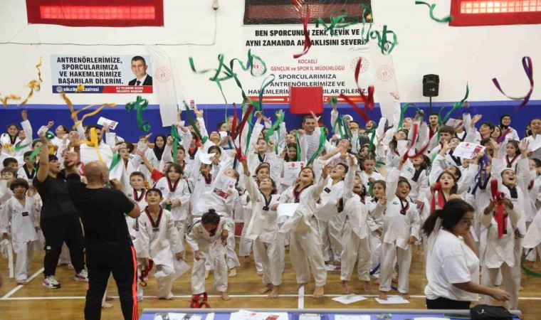 Gölcük Belediyespor bünyesindeki tekvando branşında bulunan 370 sporcu, düzenlenen törenle kuşak atladı.