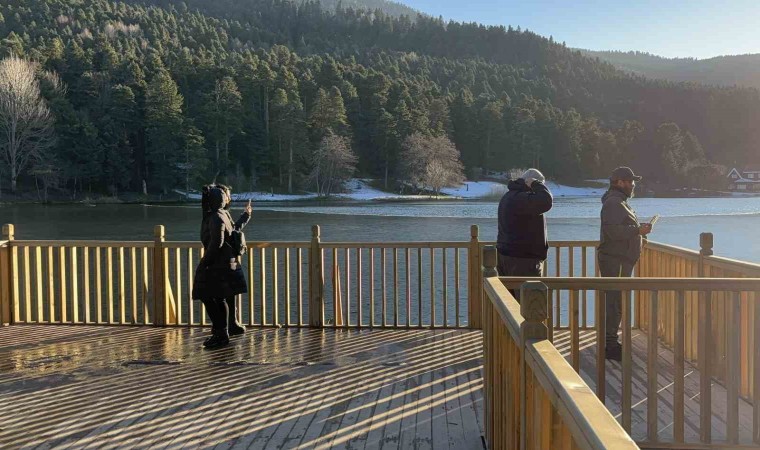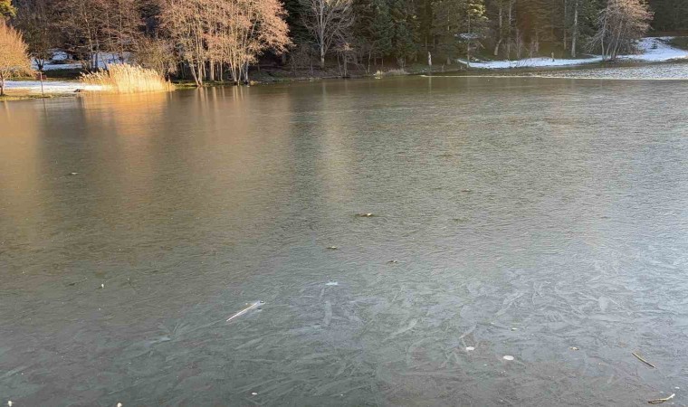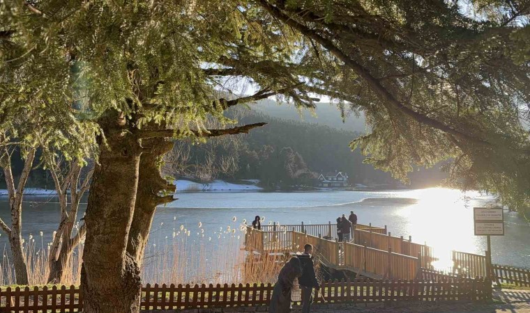 Bolu’nun doğa harikası Gölcük Tabiat Parkı, hava sıcaklıklarının sıfırın altına düşmesiyle göl yüzeyi kısmen buz tuttu. Gölcük’e ziyarete gelen vatandaşlar, muhteşem manzaranın tadını çıkarttı.