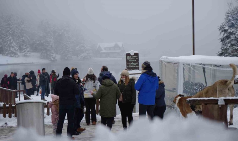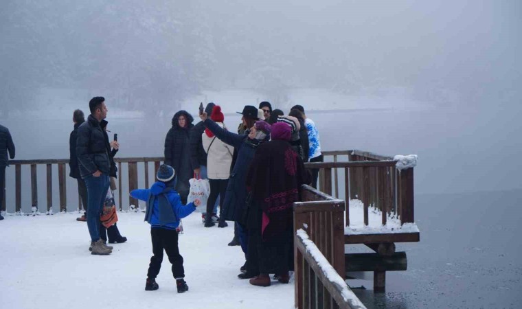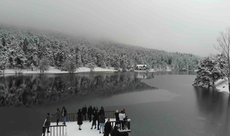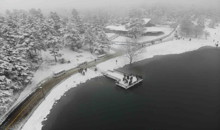 Bolu’nun incisi olarak tabir edilen Gölcük Tabiat Parkı’nda etkili olan kar yağışı dolayısıyla kartpostallık manzaralar ortaya çıktı. Ziyaretçiler ise göl etrafında yürüyüş yaparak, doğayla iç içe vakit geçirdi.
