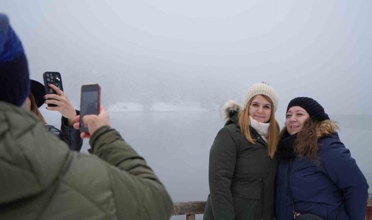 Zonguldak’ın Çaycuma ilçesinden Gölcük Tabiat Parkı’na ziyarete gelen Şakir Calap, "Gölcük güzel, daha önce de gelmiştik. Bir de karlı halini görmek istedik. Çok beğendik" dedi.