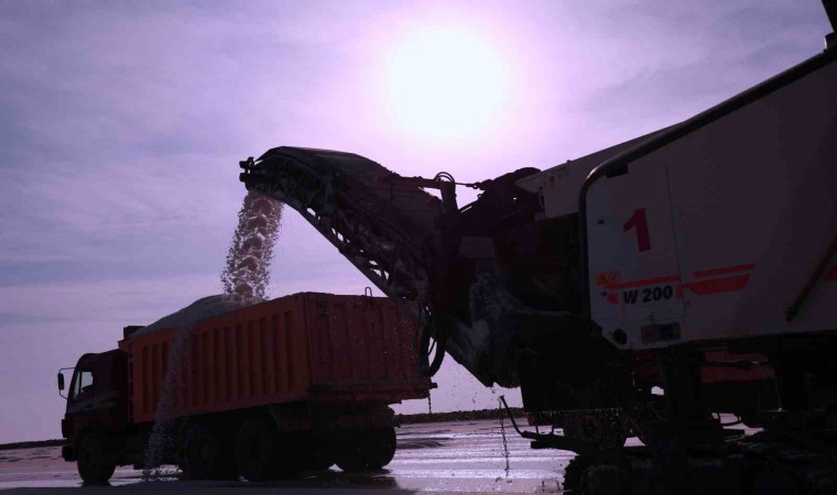 Türkiye’nin tuz ihtiyacının yüzde 60’ının karşılandığı Tuz Gölü’nde, suların çekilmesiyle birlikte başlayan tuz hasadı aralıksız sürüyor. Sezon boyunca ham olarak üretilen 1 buçuk milyon ton tuzun büyük bir bölümü 60 ülkeye ihraç edilirken, kalan kısmı farklı sektörlerde değerlendiriliyor.